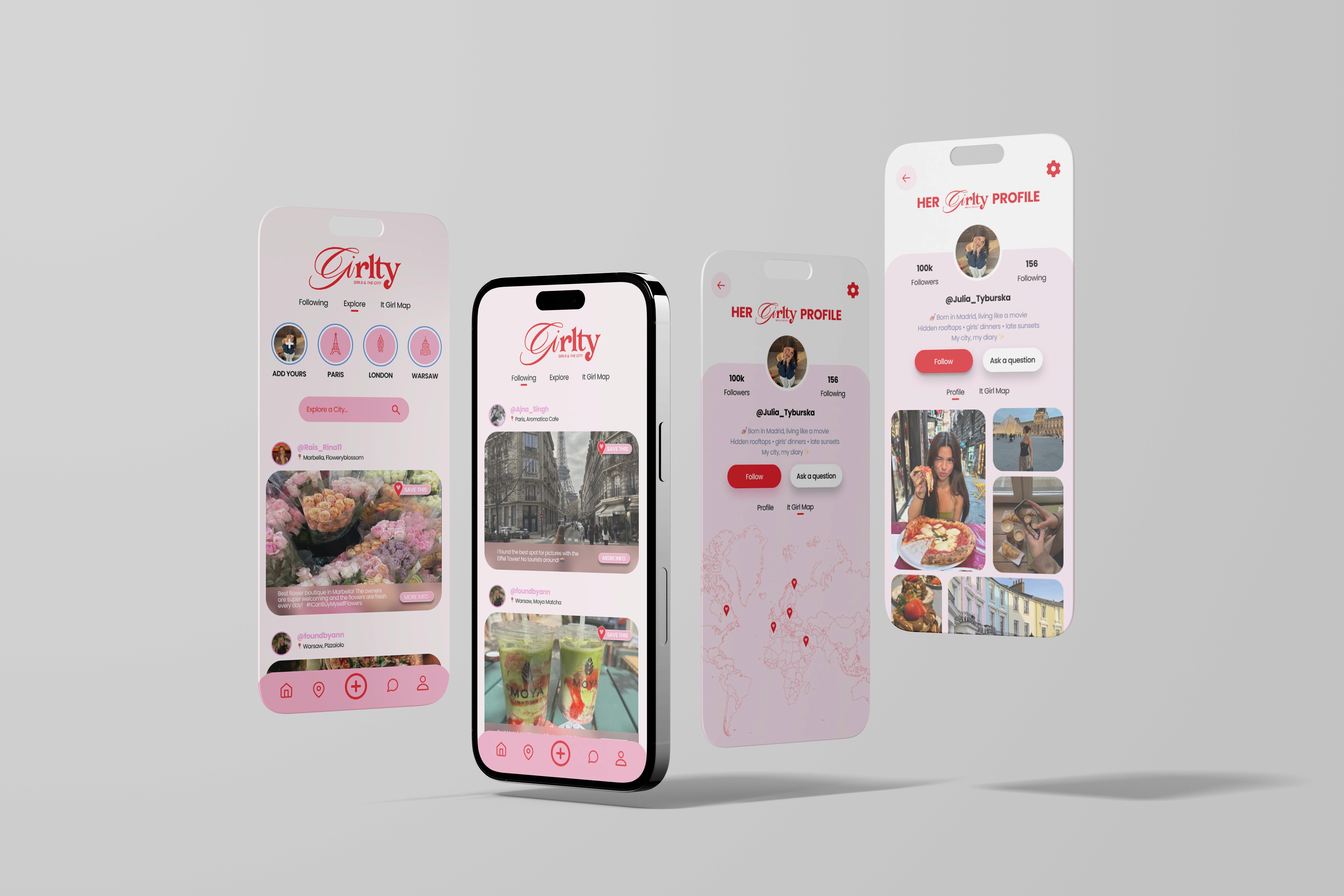 Girlty is a concept of a travel app made for girls who love exploring cities. It’s about identity, connection, and self-expression through places. I wanted to show how every girl builds her own story through the city she lives in or visits. The app lets users share their favorite spots, create maps, and show their unique style through travel. It’s like a mix of a travel guide and a social space where girls inspire each other.