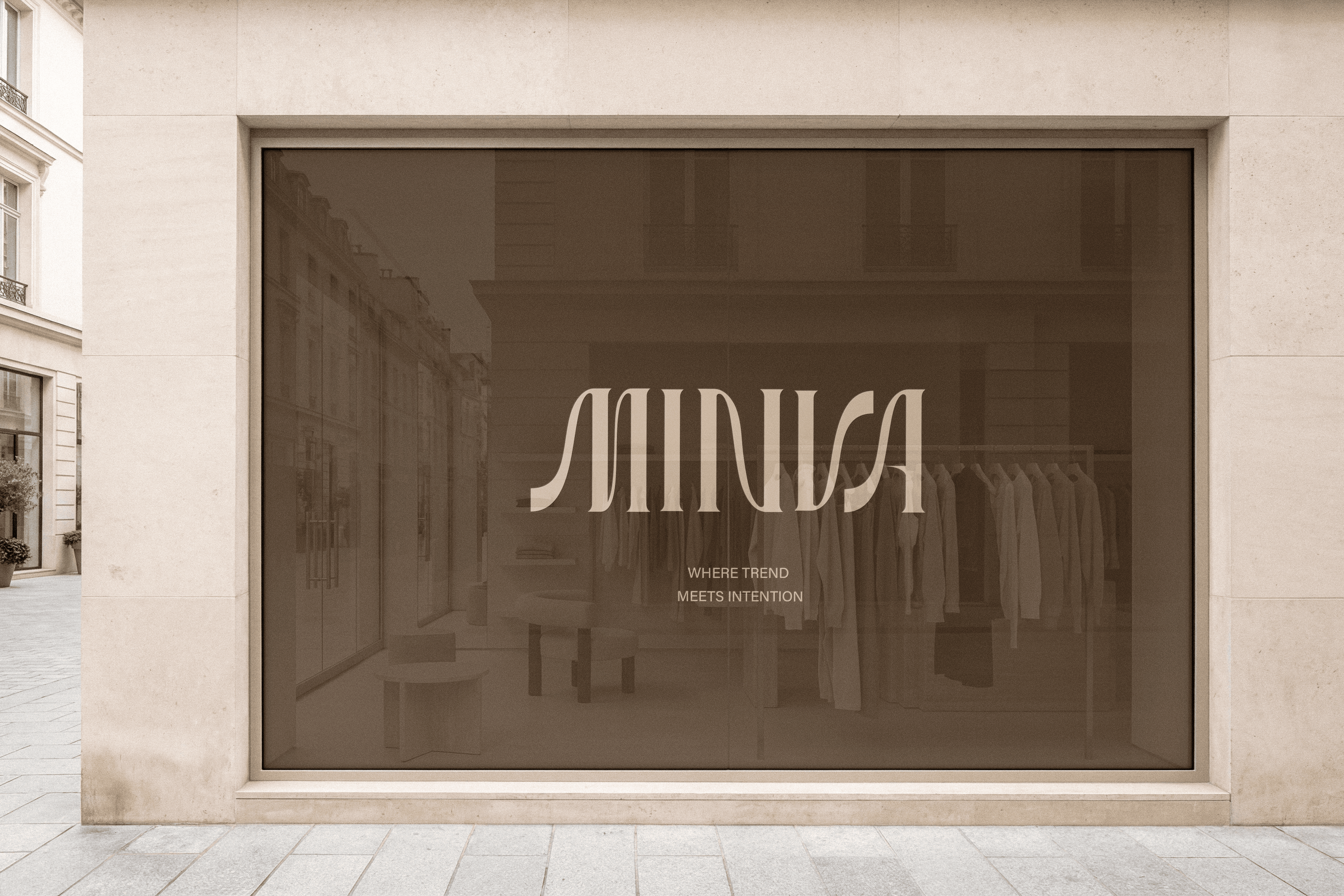MINVA IS A LUXURY FASHION BRAND DEFINED BY MINIMALISM AND ELEGANCE. I CREATED A REFINED VISUAL IDENTITY USING A CUSTOM-DESIGNED FONT, CLEAN LINES, AND A RESTRAINED COLOR PALETTE, RESULTING IN A TIMELESS, SOPHISTICATED, AND UNDERSTATEDLY LUXURIOUS LOOK.